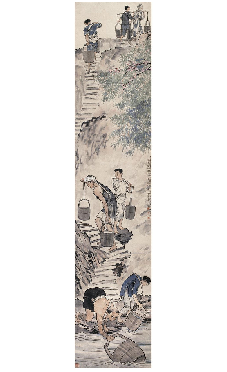 徐悲鸿 《巴人汲水》 纸本设色 294x63cm 1937 徐悲鸿纪念馆藏