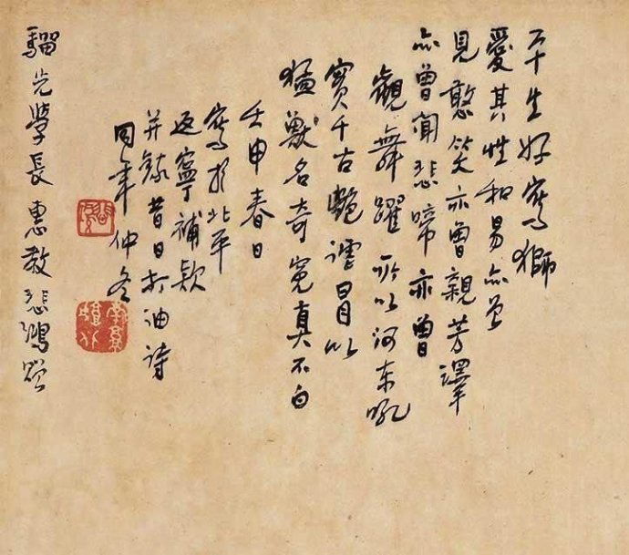 画赠中国近代史上甚具影响力的人物朱家骅。朱家骅(1893-1963),字骝先,浙江湖州人,民国时期政坛要角,教育界、学术界泰斗,历任要职,赴台后,一度代行总统职务。1948年12月25日,新华社公布四十三名内战战犯名单,朱家骅列第二十位,在宋美龄、阎锡山、傅作义之前。