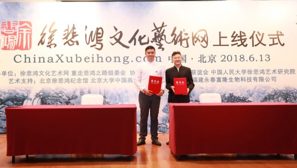 2018年6月13日下午,在徐悲鸿任教北京大学画法研究会100周年之际,由北京徐悲鸿纪念馆馆长、徐悲鸿之子徐庆平发起,苏州华兴尚品文化艺术发展有限公司运营的“徐悲鸿文化艺术网”上线仪式在北京举行并取得圆满成功。