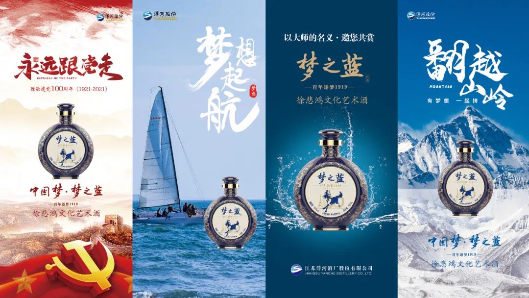 媒体合影留念 在庆祝晚宴上,与会人员共同品鉴了刚上市的徐悲鸿文化创新产品——梦之蓝·徐悲鸿文化艺术酒。徐小阳会长在会上亲自对该产品作了简单介绍。该产品是为了践行文化复兴,坚定文化自信,弘扬悲鸿精神,推动文化创新,纪念徐悲鸿先生赴法留学100周年,和洋河股份联合打造,集名人、名画、名酒、名瓷于一体,将中国传统白酒和现代文化艺术完美交融,再现大师巨作,同时将中国和西方的文化圆满融合,中西合璧,匠心独运,不仅是一瓶传世佳酿,更堪称一件“艺术瑰宝”,具有极高的艺术收藏价值。
