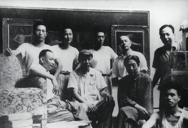 1953年合影,第一排左一为江丰、左二为王式廓、右二为徐悲鸿、右一为戴泽;后排右一为李宗津、右二为倪贻德、右三为冯法祀 孙宗慰是20世纪30年代受教于徐悲鸿的第二期学生,并在1947年之后应徐悲鸿之邀任职于北平艺专。他曾陪同徐悲鸿多次外出写生,并受到张大千的特殊赏识,邀其在1941年作为张大千的唯一助手远赴甘肃、青海等地,对于洞窟和寺庙壁画遗迹做考察抢救和临摹复制,西北风情和法度主导的壁画摹绘使得孙宗慰走出了一条“始于悲鸿、基于大千”的独树一帜的油画民族化风格。