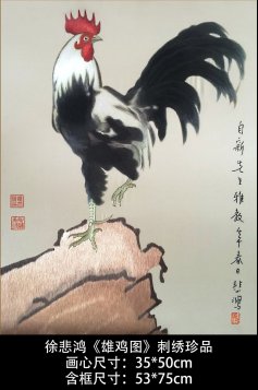为了确保《雄鸡图》刺绣能原汁原味呈现出徐悲鸿艺术的精髓,徐骥曾多次与《雄鸡图》刺绣作者姚美珍进行深入的交流。谈到祖父徐悲鸿创作的鸡画,徐骥表示展现中华民族不屈不饶之气节是其神髓之所在,因为徐悲鸿创作的鸡画多是昂首挺立、怒发冲冠的公鸡,通过对鸡冠、鸡爪及鸡尾的重点刻画,表现出中国人民不屈不挠的民族精神和高洁的品格。1981年,中国生肖金银币开篇之作选取的正是徐悲鸿《雄鸡图》中的雄鸡,可见国家也视《雄鸡图》为民族精神的象征。