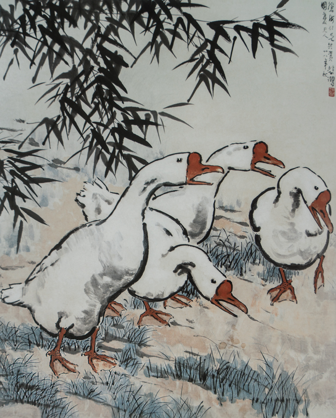 徐庆平:父亲画画从来不用墨汁,他的墨都是好墨磨出来的,现在墨汁和磨出来的墨的质量是不可同日而语的,所以如果看到用墨汁画出来的画,那就不是他的画。那个时代,他在条件允许的情况下是非常讲究用纸的,但是有时候条件不好,他便使用了很多皮纸和高丽纸,这是其他画家很少用的。他的题款和印章也是很讲究的,他不喜欢在画上题太多的字,而且题款都在画的最边上,丰富画面,但不会破坏画面。由于现在假冒印章的技术太高了,完全可以做到天衣无缝,做出跟他一样的印章是很容易的,所以从印章上已经不容易辨别出来。