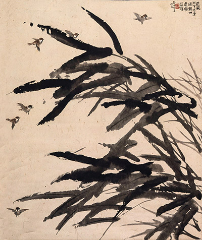 毛主席经常看徐悲鸿的画册,最爱一幅《逆风》。画中没有马群,2 / 3的纸上布满了被狂风吹得倒伏的芦苇,左上角几只不起眼的小鸟逆风向上飞。周恩来总理最喜欢的画叫做《风雨鸡鸣》,出自《诗经·郑风》风雨篇第三段,“风雨如晦,鸡鸣不已”。凄风苦雨阴沉沉的天,一只雄鸡站在大石头上高鸣。这都是徐悲鸿对祖国的美好憧憬。
