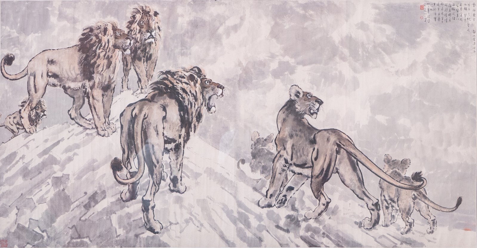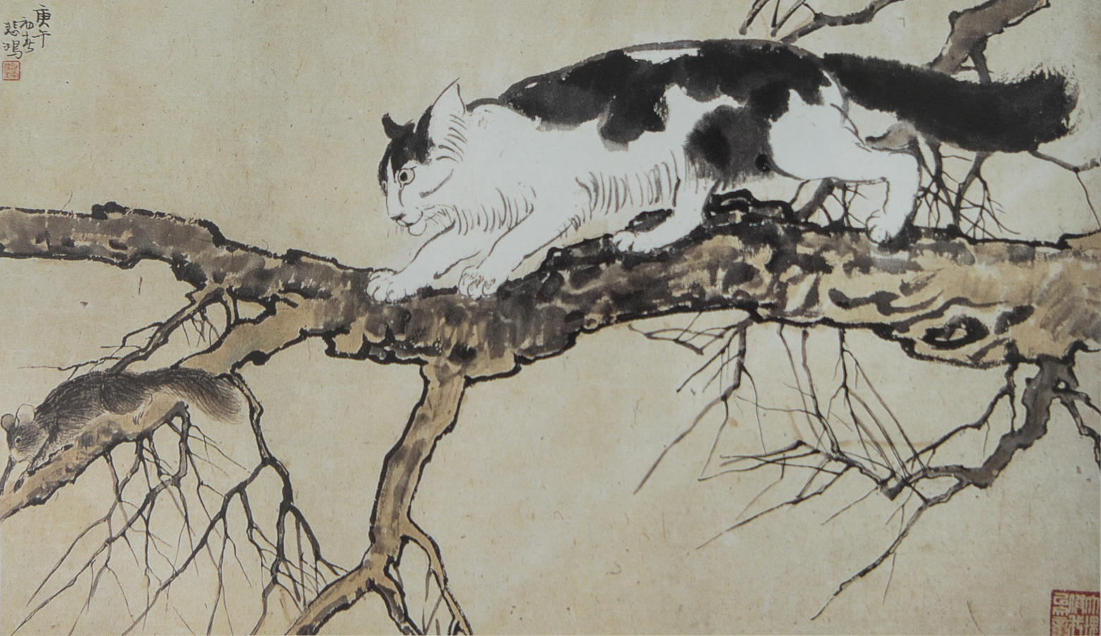 纸本设色,90X174cm,1919年,徐悲鸿纪念馆藏