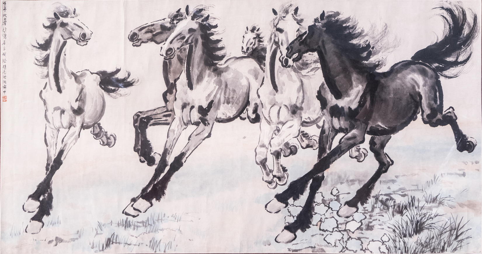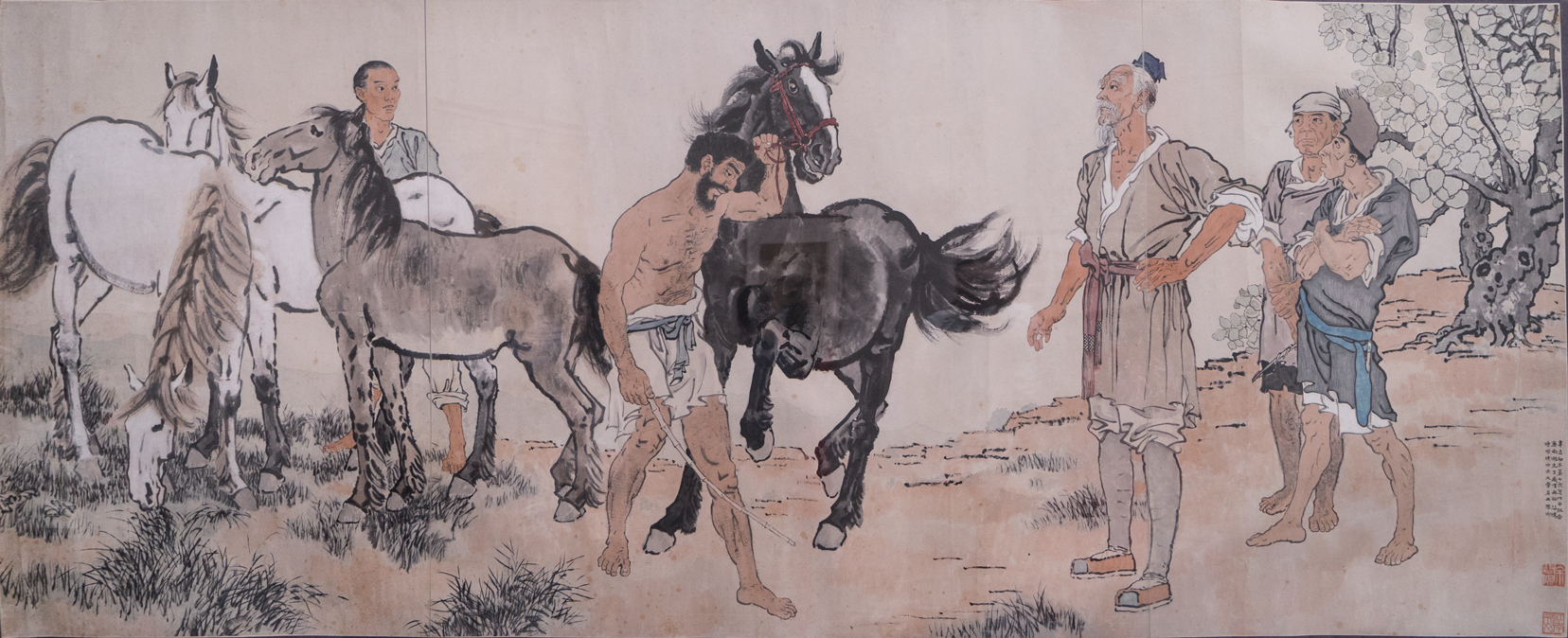 纸本设色,141X364cm,1936年,徐悲鸿纪念馆藏