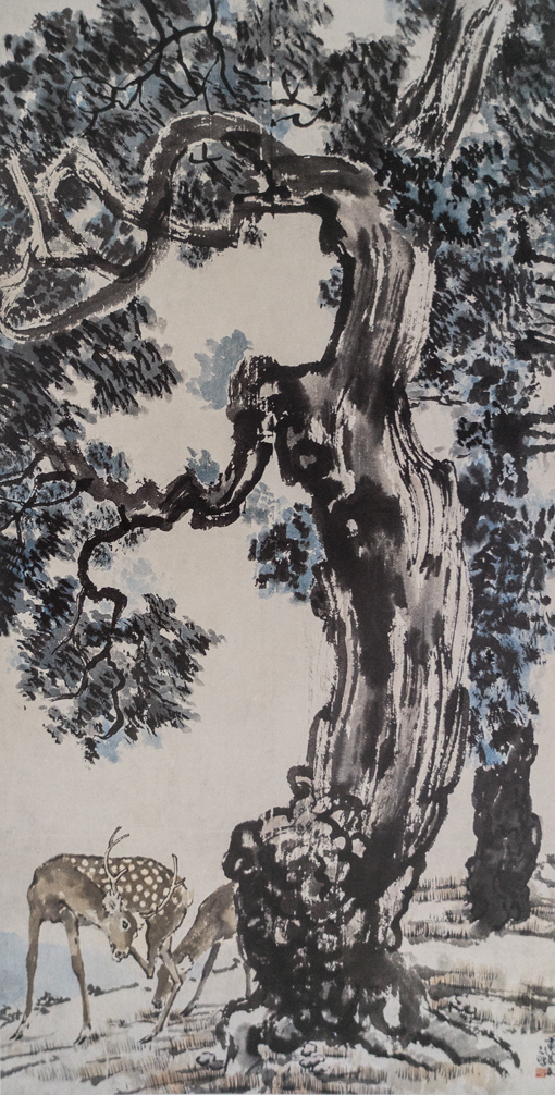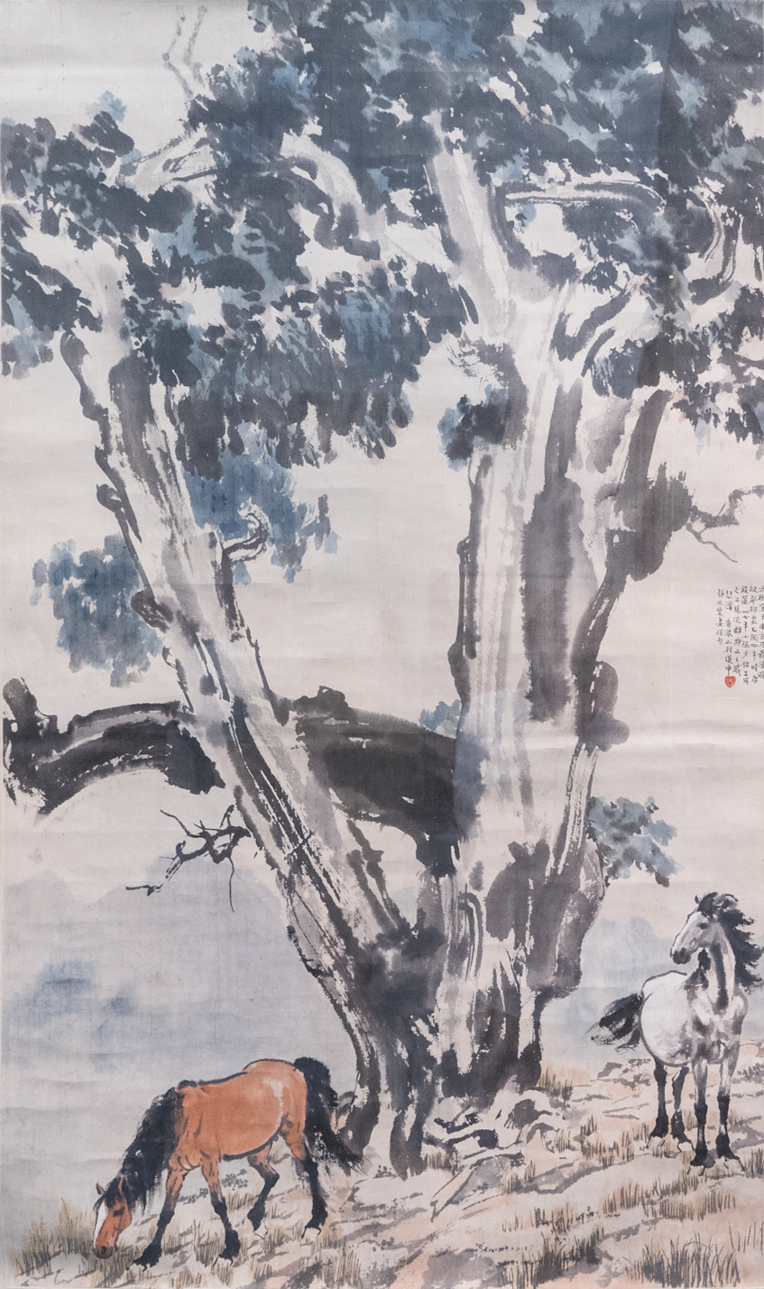 纸本设色,351X139cm,1931年,徐悲鸿纪念馆藏