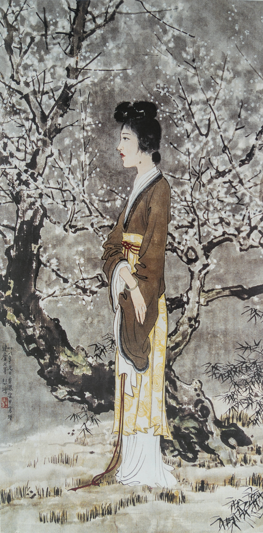 纸本设色,105.5X65cm,中期作品