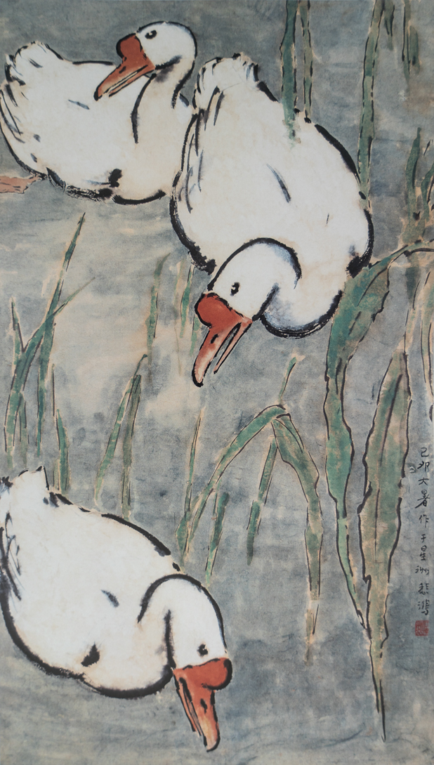 纸本设色,352X71cm,1949年,徐悲鸿纪念馆藏