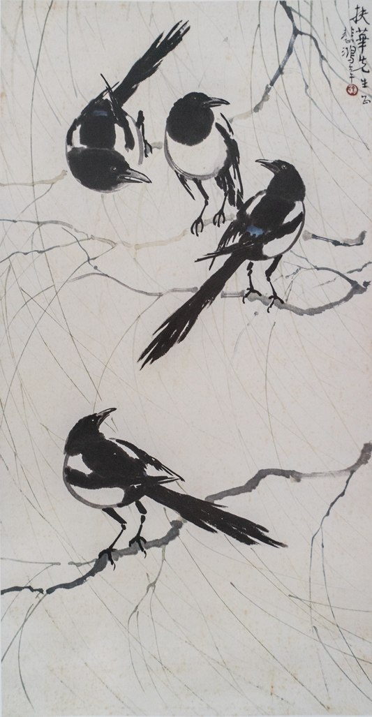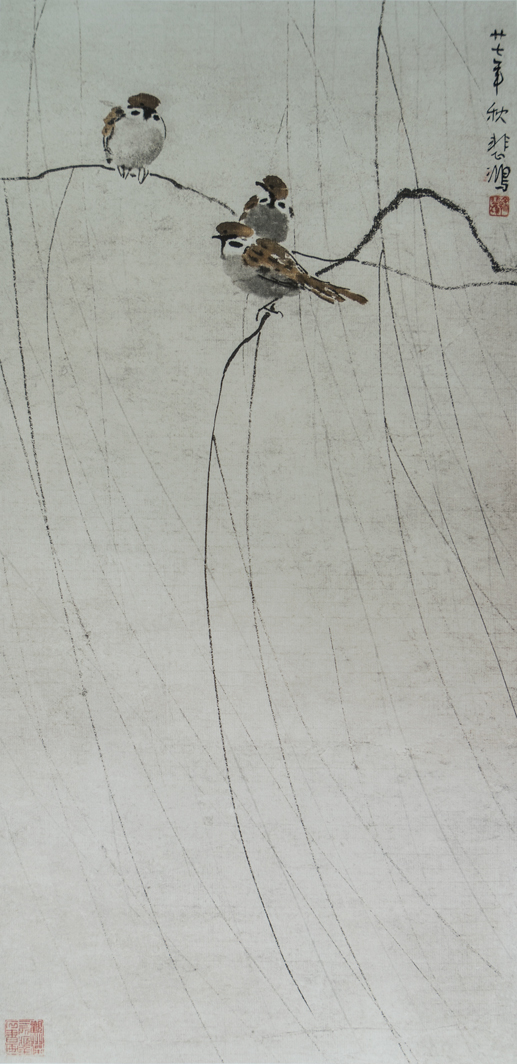 纸本设色,95X53cm,1918年,徐悲鸿纪念馆藏