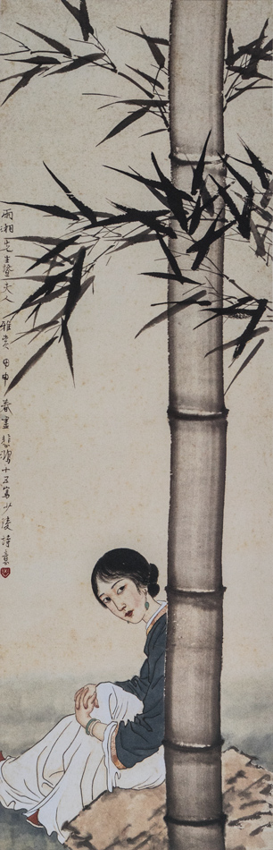 纸本设色,133X44.5cm,1935年
