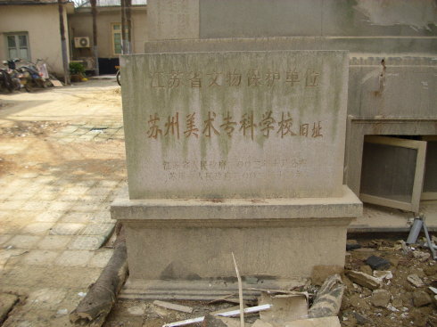 装修中的苏州美术馆 两年后,吴子深有慷慨捐资,于沧浪亭东侧购得空地三亩余,自建新式校舍一座。1931年10月奠基,1932年8月落成,美校与美术馆一并迁入新楼。1933年增设高中艺术科,1934年增设实用美术科和实习工场。1937年迁校上海。1945年复迁苏州,并续办沪校,改学制为五年,设国画、西画两科,沁校增设研究科。出版有校刊《艺浪》。