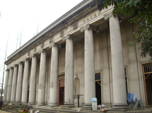 主楼高三层,底层为半地下室。平屋顶,灰白色外墙,南北向。平面对称,面阔九间35米,当中五间进深19米,左右各两间进深13米,形成坐北朝南的凸字形。南立面线条平直简洁,北立面横贯进深2米的柱廊,等距离排列仿古希腊爱奥尼式圆柱14根,上承檐部。此楼保存完整,在苏州近现代建筑中独具一格。